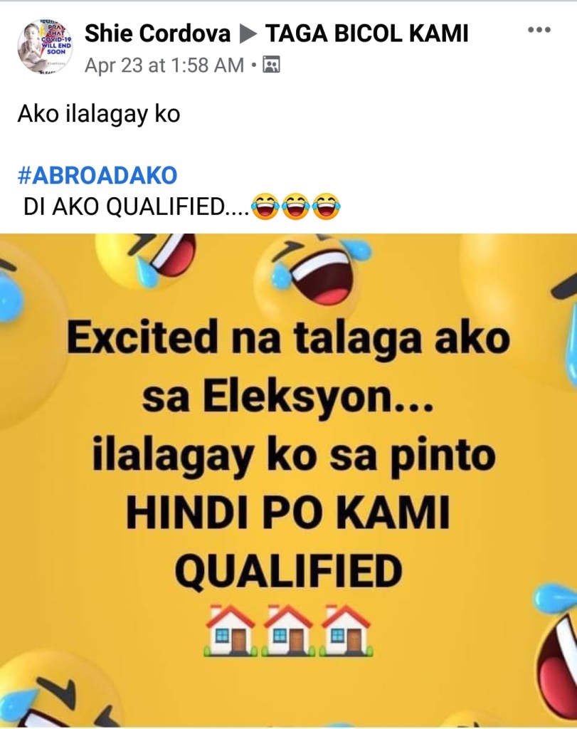 Dakul an nagkakariribok dahil sa pagbilog kan listahan kan mga beneficiaries kan Social Amelioration Program (SAP) kan gobyerno. Dahil bako gabos kasabay maski sabi ni Speaker Alan Peter Cayetano na gabos na harong igwa asin sabi ni Presidente Rodrigo Duterte na igwang kwarta an gobyerno, nagruluwasan ang mga moto-moto asin “hugot” ka mga Bikolano.
