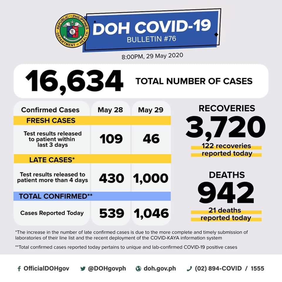 Meanwhile, total Covid-19 cases shot up to 16,634 after 1,046 were recorded Friday. Deaths are now at 942 while recoveries at 3,720