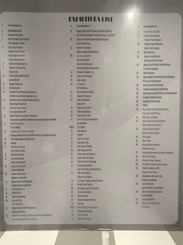 Products being showcased are food from different places in the Bicol Region to the terracota products to handicrafts. We also saw in the list the names of companies whose products include those that protect the environment.