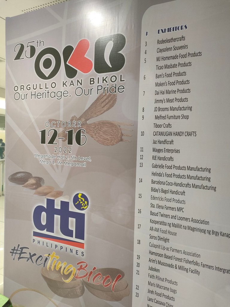 The 25th Orgullo kan Bicol (OKB) Trade Fair is happening on October 12-16, 2022 at Megatrade Hall, SM Megamall. There is no buzz right now but in support of the exhibitors, let us visit the event especially for the Bicolanos who are in Metro Manila. Invite also your friends and possible investors who can be partners in reviving the economy.