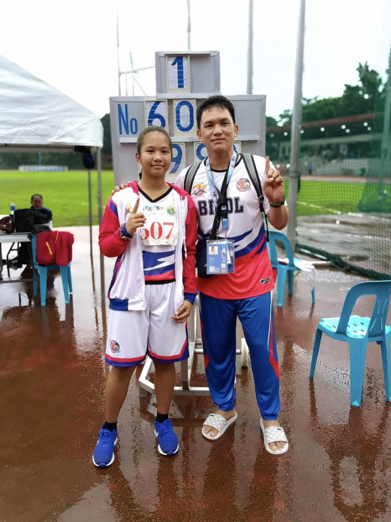Courtney Jewel M. Trangia, Discus Throw. Trangia, a 16-year-old athlete from Balud, Masbate, has secured a gold medal by achieving an impressive record of 35.66 meters in the Discus Throw event. The talented athlete was under the guidance of coaches Regine B. Librando and Jonathan G. Librando.