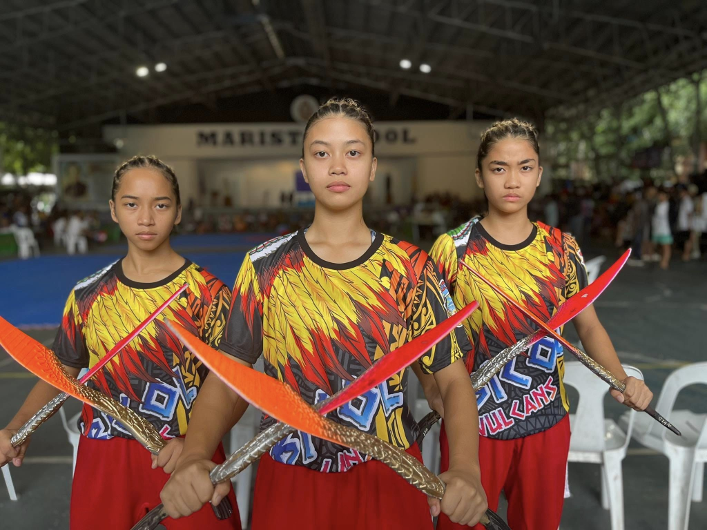 Justine Trixiane A. Quililan, Justine Gianne A. Quililan, and Joanne Marie G. Lopez, Synchronized Single Weapon (Arnis). The athletes secured a gold medal for the Secondary Girls Category.