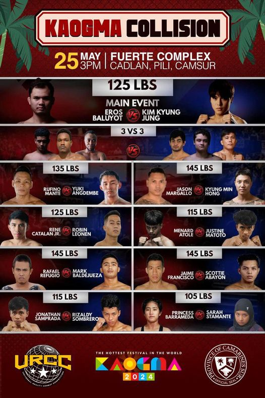 Ang mainit na Mayo lalo pang magiging mainit sa ralaban kan mga notadong Mixed Martial Artists (MMA) hatod kan URCC para sa Kaogma Colliision.
