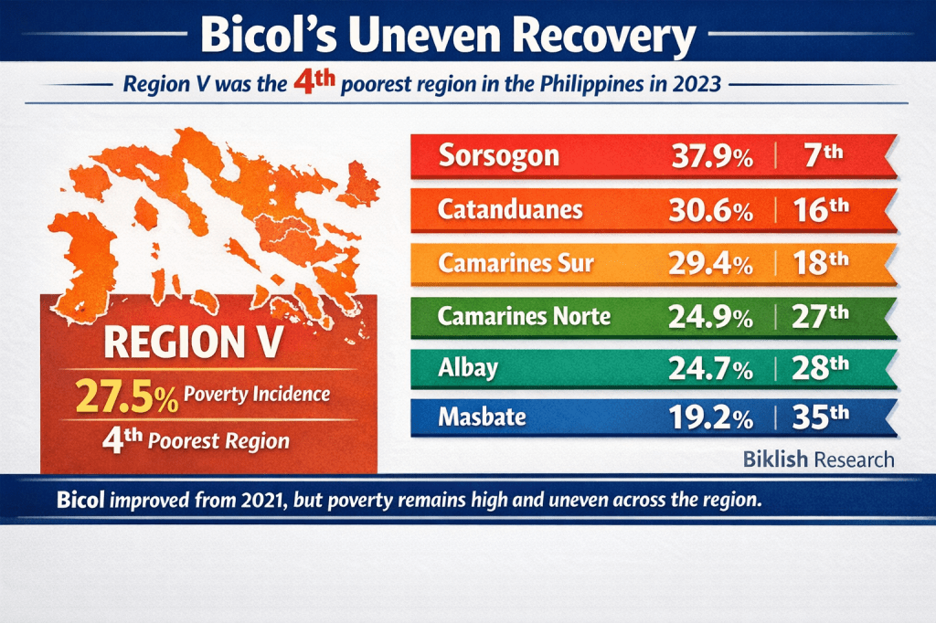 This means Bicol’s poverty problem is not just about low incomes. It is also about distance, isolation, uneven infrastructure, weak market access, and unequal opportunity.